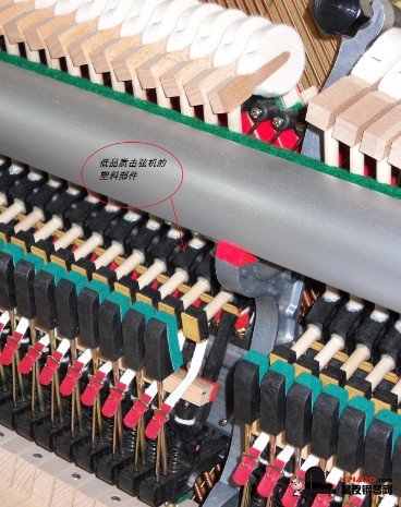 2,一定要全木部件的擊弦機,現(xiàn)今的高科技,木部件的加工精度可以達到千分之一英寸,任何 替代品都是無法和全木部件的高品質(zhì)相比的。現(xiàn)在有很多廠家都使用了ABS或STYRAN塑料,而且大部分的代替代部件的顏色會是白色,灰色和黑色,少數(shù)廠家也把顏色仿成木色。對于仿木色的 塑料部件,通過手觸摸法便可以分辨,木做的部件,手感“溫暖”,能觸覺到紋理變化,塑料部件摸上去有“涼”的感覺,并且“滑”手。